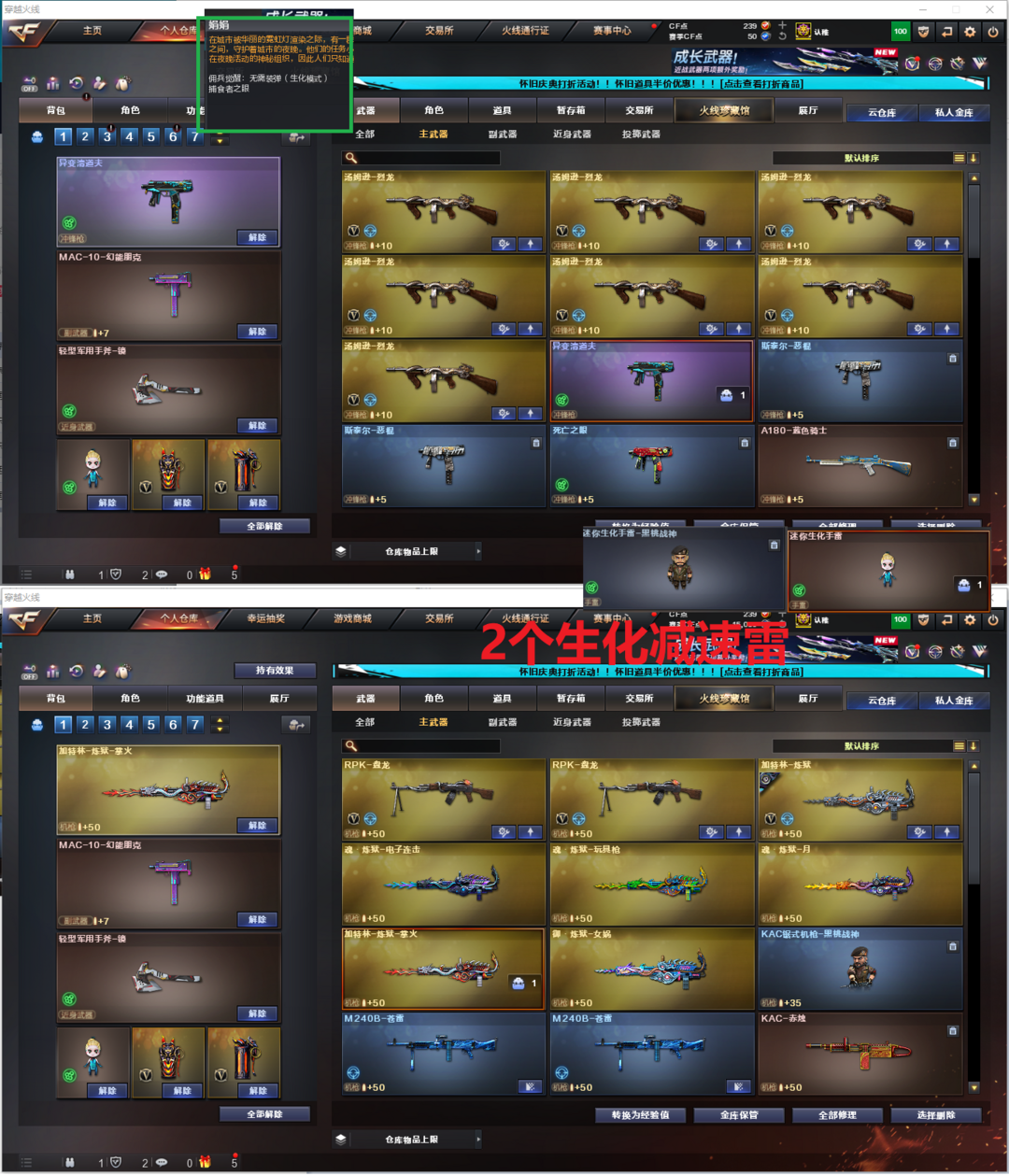排位:可以--------------生化全装(可以看僵尸血量)无需换弹、6烈、2盘龙、炼狱、异变清道夫、死亡之眼、MAC-涂鸦、2个生化减速手雷、全部弹匣、、、、、、爆破全装:幻神、2个COP堕天神、QBZ金色蔷薇、、、毁灭音效、、、6套堕天神、4套夜魔、、、、生化人物(娟娟)