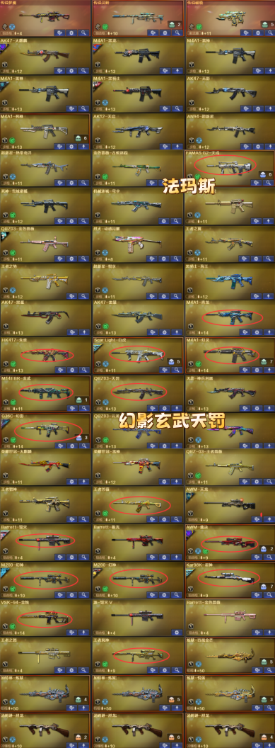 王者武器:王者冰锋;QBZ-03-王者蔷薇-觉醒版;王者之势-觉醒版;王者之翼-觉醒版;超新星-悦享-觉醒版;王者之怒-觉醒版;炼狱-悦蓝-觉醒版