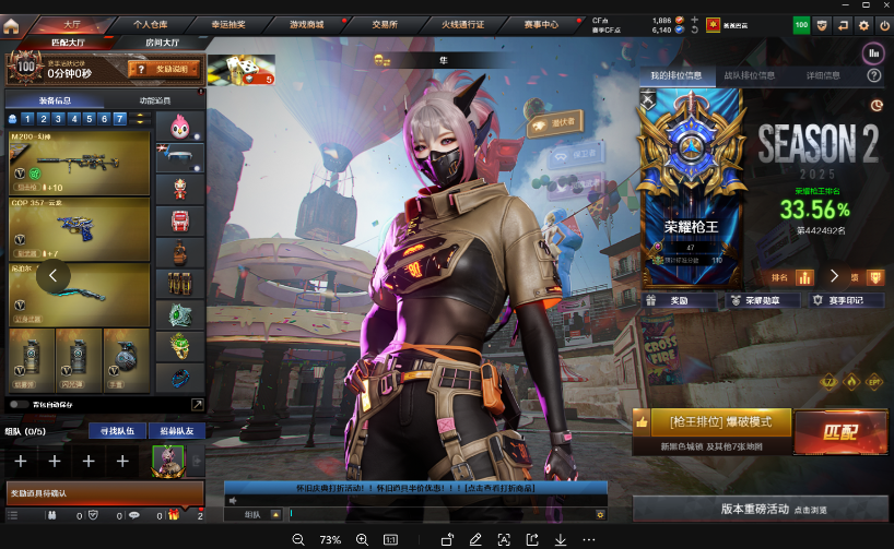 1.排位荣耀枪王 2.总V数:57V 角色V:隼、葵 爆破热门枪:幻神+黄忠皮、风神、G36C幻影、白虎、COP云龙、QBZ、火麒麟、雷神、烈火、超新星、毁灭 生化热门枪:炼狱、2盘、双面神