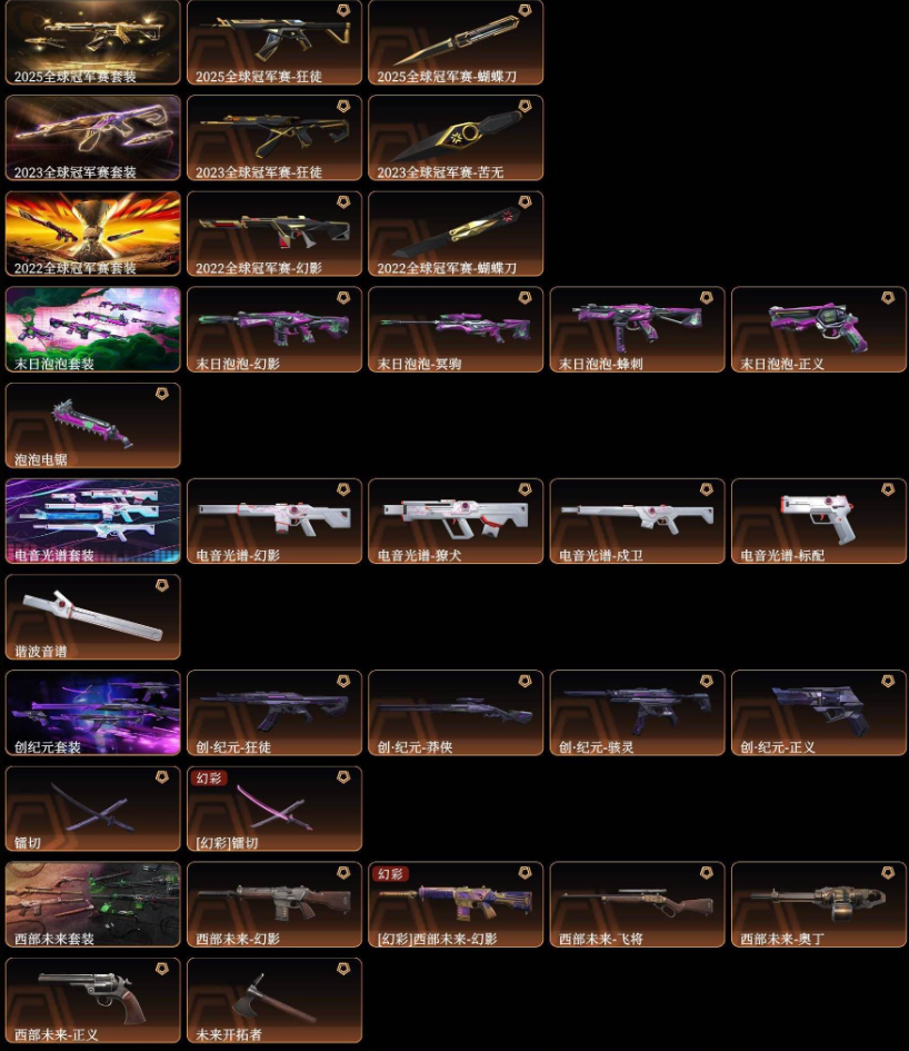 可排位大库存☆22.23.25全球套☆末日套☆纪元套☆西部套☆艾沃莉☆25爪刀☆RGX☆各种散件☆炫