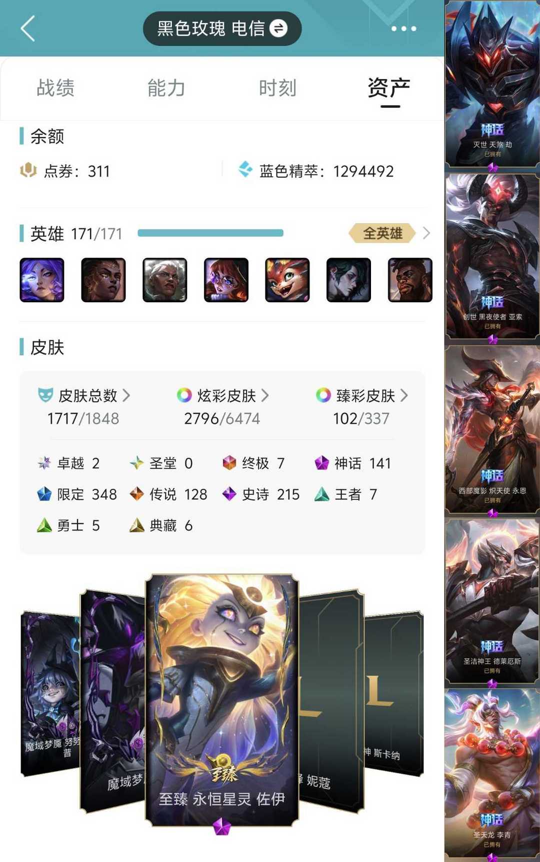 顶级1717原皮✌冠军臻彩✌名人堂新皮已更✌灭世天煞圣洁神王✌创世黑夜亚索炽天使暗裔英雄3000t1