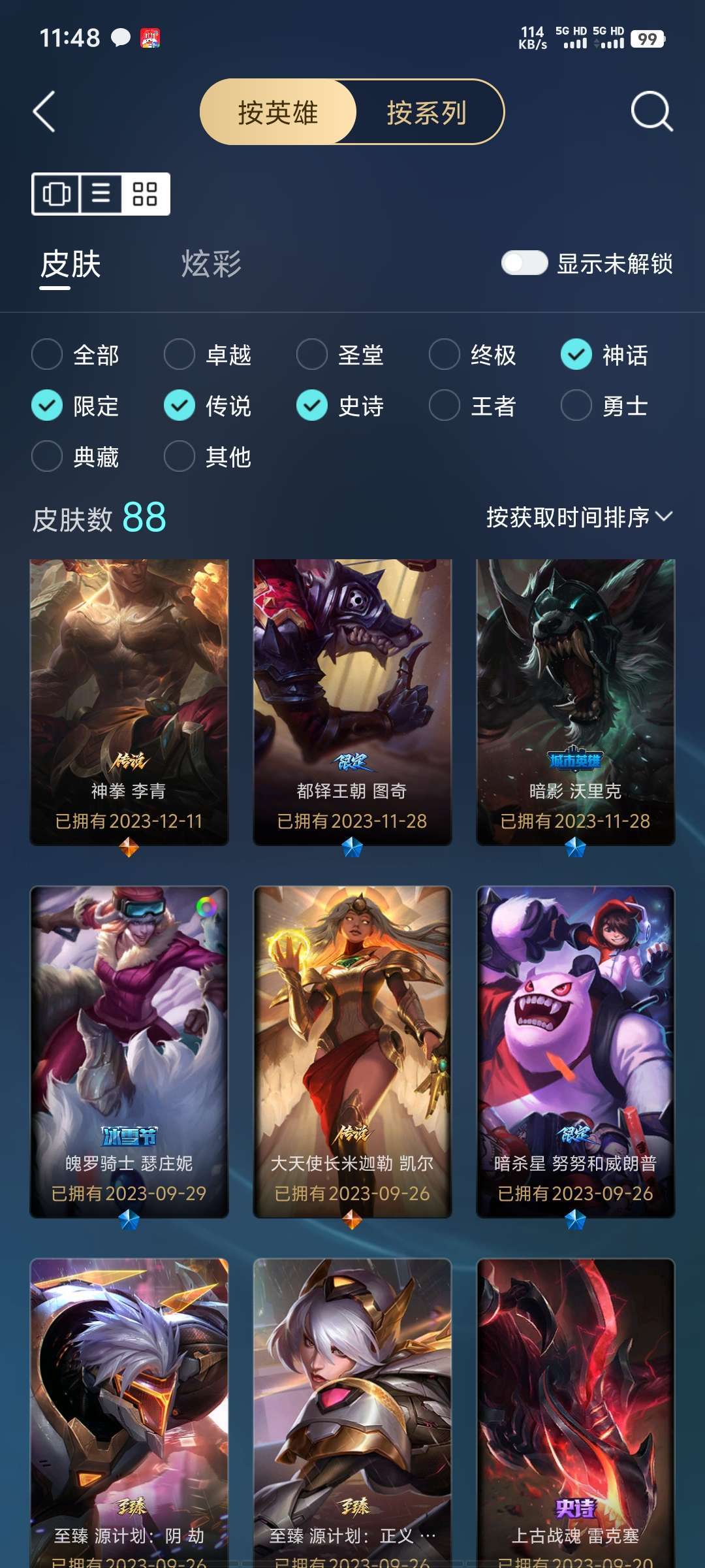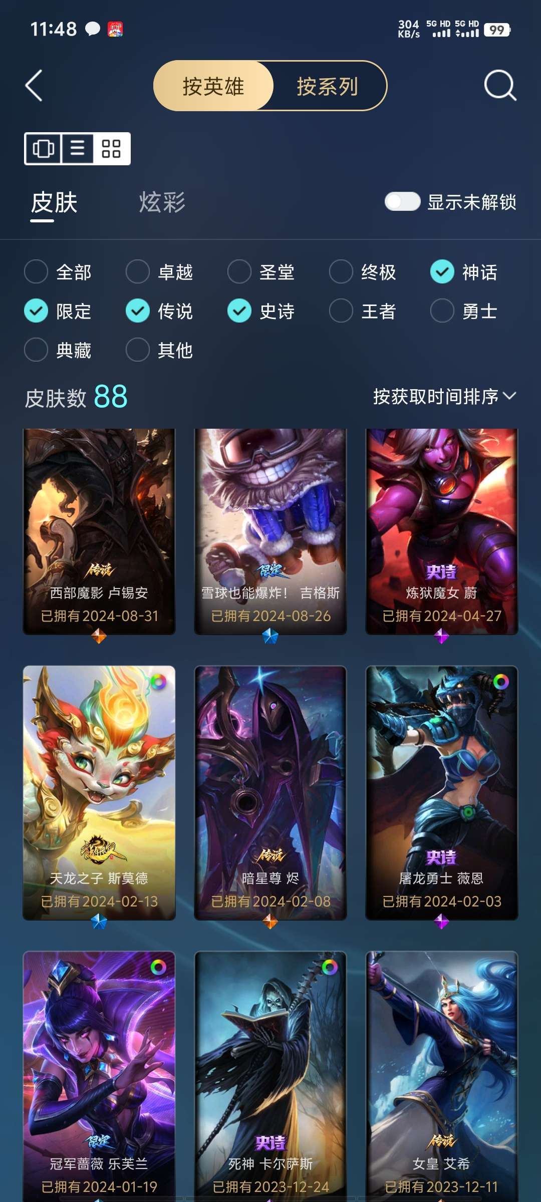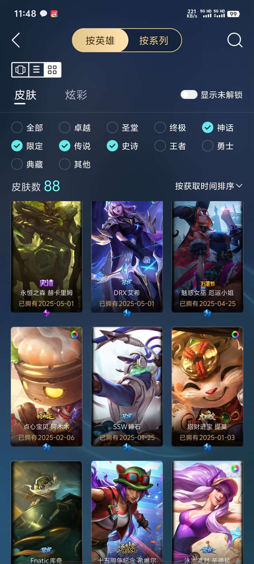 T1的塞拉斯 全英雄 有部分皮肤