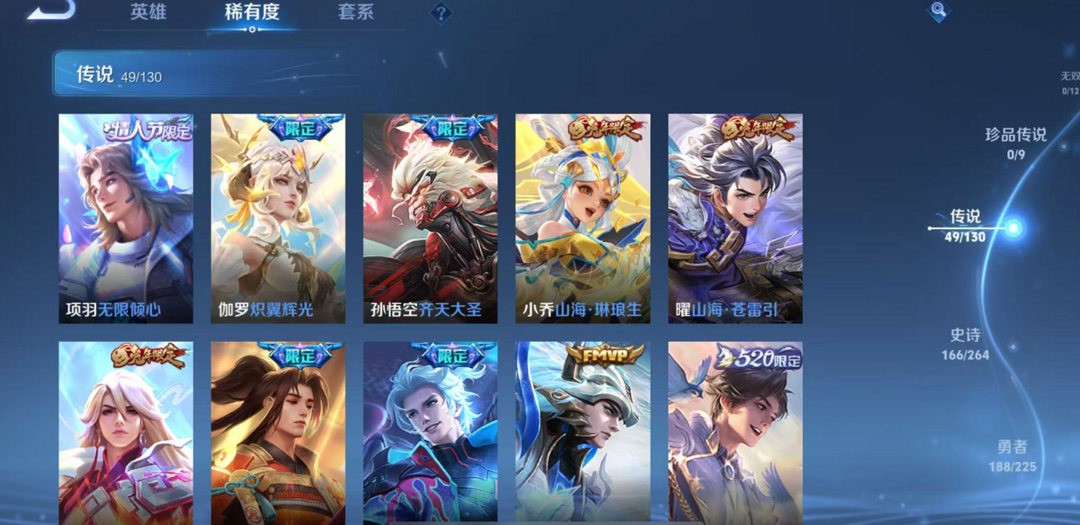本游戏账号: V10用户,基础段位:至尊星耀I,英雄多,皮肤多。典藏皮肤5个,感受典藏皮肤带来的优质体验快感,FMVP皮肤4个,尽情享受FMVP皮肤带来的主角光环, 私人所属英雄皮肤有:李白 鸣剑·曳影||孙悟空 全息碎影||武则天 倪克斯神谕||貂蝉 幻阙歌||韩信 弑枪猎影司空震 愿照·山河定||吕布 天魔缭乱||李白 诗剑行||李白 凤求凰||孙悟空 齐天大圣||孙悟空 零号·赤焰||孙悟空 地狱火||武则天 海洋之心||诸葛亮 时雨天司||诸葛亮 武陵仙君||李信 山海·炽霜斩||李信 一念神魔||虞姬 愿照·岁时盈||虞姬 启明星使||虞姬 云霓雀翎||貂蝉 曦玄引||貂蝉 仲夏夜之梦||曜 山海·苍雷引||曜 李逍遥||项羽 无限倾心||公孙离 记忆之芯||公孙离 祈雪灵祝||孙尚香 末日机甲||艾琳 觅芳踪||夏洛特 浮生妄||露娜 霜月吟||嫦娥 器灵·落星盏||狄仁杰 超时空战士||小乔 山海·琳琅生||赵云 淬星耀世||后羿 黄金射手座||李元芳 飞鸢探春||