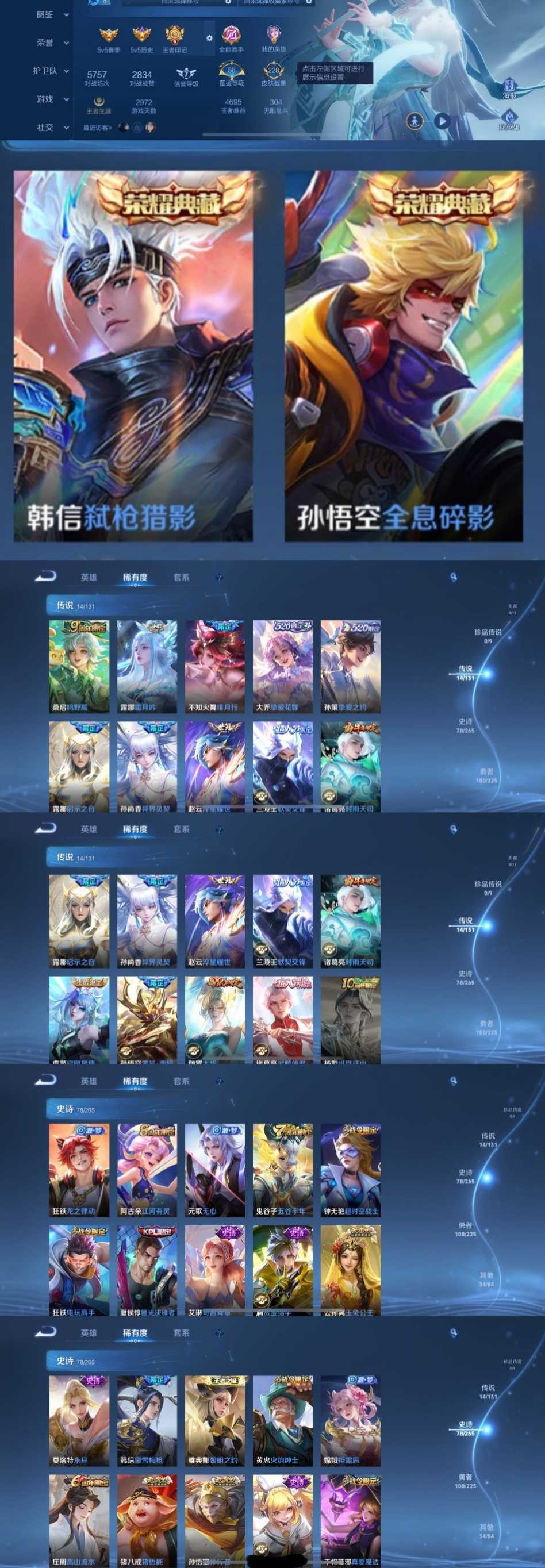 时间到了还登录白玩或者顶号全部改密拉黑处理永不解除,顶号机器会秒禁玩改密,顶号不仅拉黑还没得玩,赚三两块不容易,请理解谢谢。 ❤❤❤❤❤❤❤❤❤❤❤❤❤❤❤ 请勿开挂,挂机,送头,骂人,撤单后游戏等如有违规永久拉黑永不解除。 重置二级密码不要费劲了,号主每天都会上号查看,多行不义必自毙,人在做天在看,多做好事多自律,少做缺德事。 该号英雄126个皮肤229个,典藏2个,传说15个,史诗78个,祝你游戏愉快~