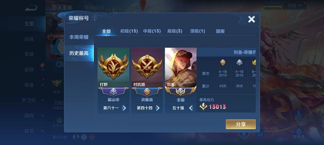 打野50段/国服刘备/时之恋人/澜逐花归海/乘龙淬吴钩/浮生妄/凤求凰地狱之眼/时雨天司