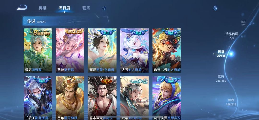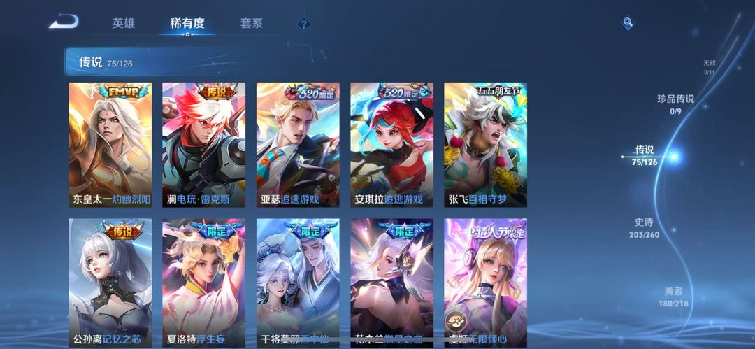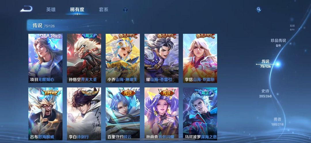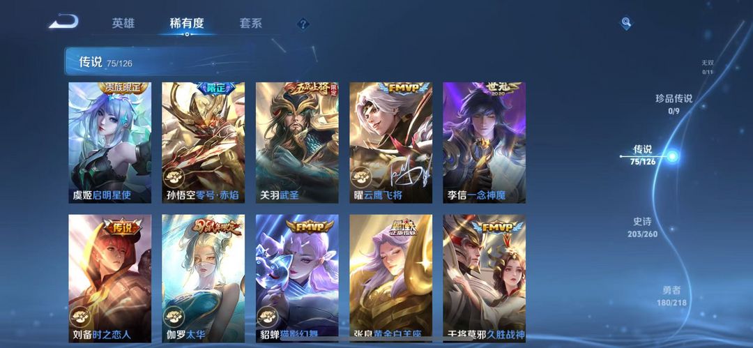 极品V10✨对抗路35段游走32段✨8水晶75传说✨7星传说✨关羽凯夏侯典藏✨关羽吕布银牌
