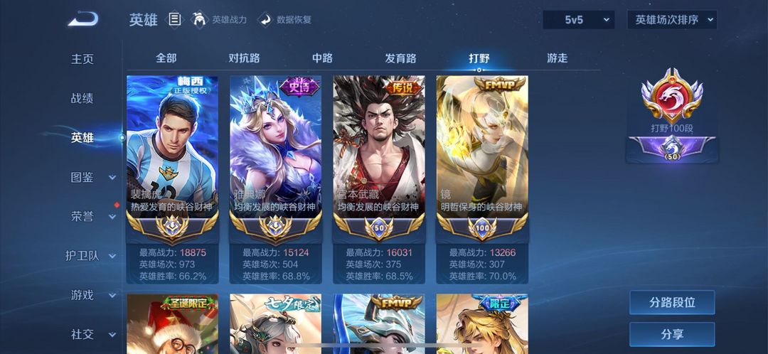 v10✨百段打野✨1.9大国裴擒虎梅西✨大国雅典娜✨小国标镜露娜百里玄策宫本武藏扉✨等8小国禁巅峰赛