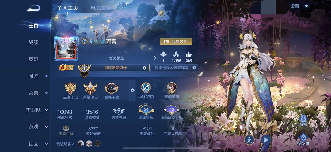 巅峰千强262名闪电框⭐️11月正式服大国貂蝉在榜⭐️极品胜率号⭐️可排位禁巅峰