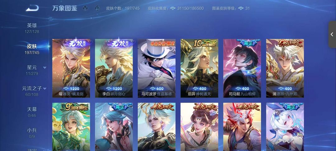 历史国服韩信金标弈星金标曜⭐马克怪盗基德⭐李逍遥,曜无双等稀有皮肤⭐禁道具/禁巅峰/禁挂机/可排位