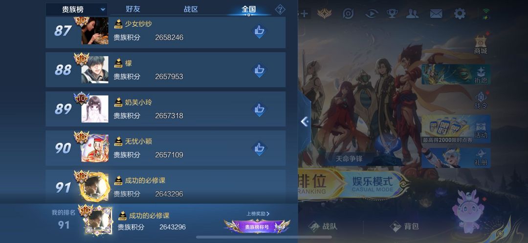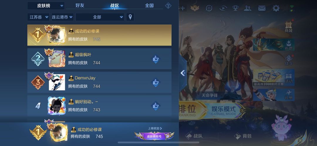 不禁言国服贵族榜皮肤榜❤️满传说播报满典藏满无双满按键满星传满天幕满小兵排名灵宝带出生特效